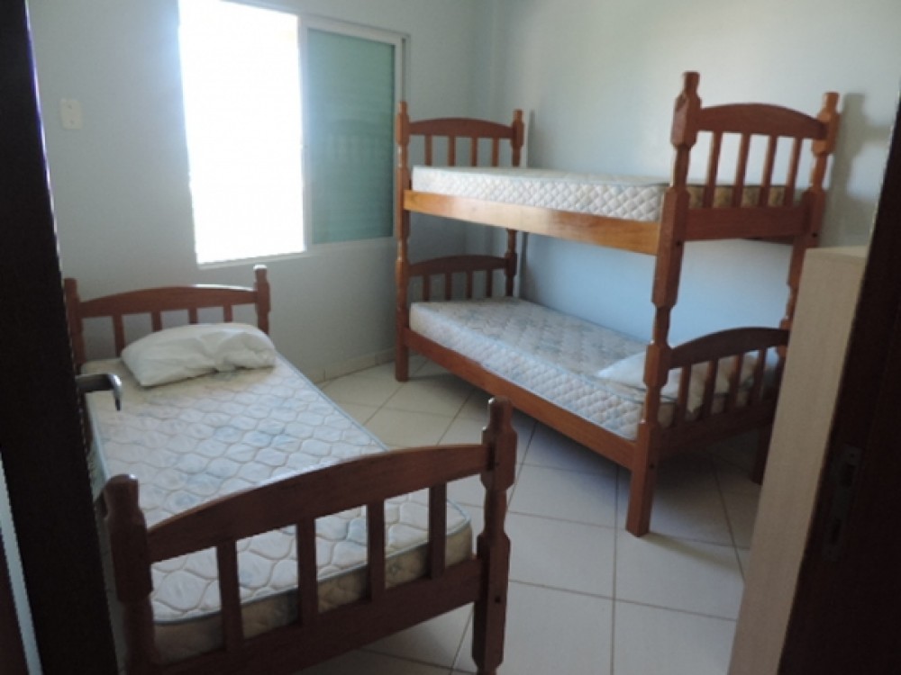 Lindo apartamento com uma suíte de casal, ar-condicionado e vista, mais um quarto de solteiro com uma beliche, uma mama de solteiro e ventilador de teto, cozinha completa, sala e sacada com churrasqueira e vista. Uma vaga de garagem.